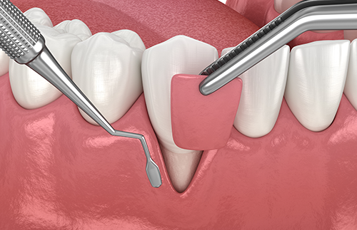 치아의 뿌리부위에 있는 치석과 염증 조직을 제거
